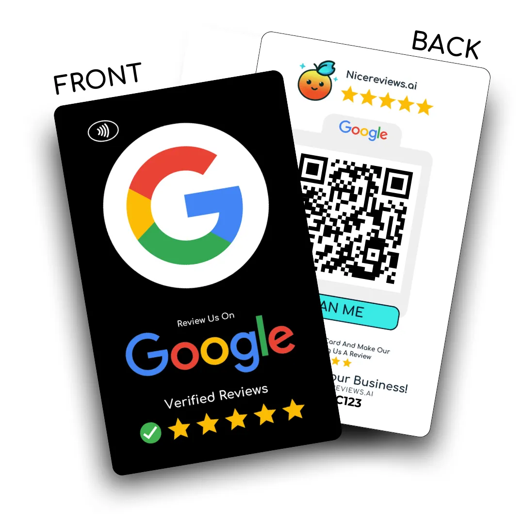 They can tap or scan the card. nicereviews.ai cards use NFC and QR Code technology compatible with any device